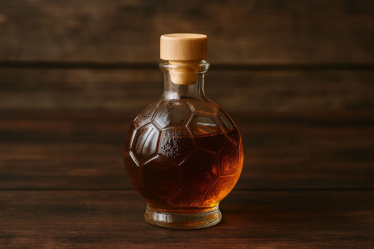 Fľaša s motívom „Futbal“ je skutočným lákadlom pre fanúšikov tohto obľúbeného športu a spája hravú eleganciu s kvalitným dizajnom. Jej detailné spracovanie v tvare futbalovej lopty ju robí ideálnym darčekom pre futbalových nadšencov a zberateľov. Vyrobená z kvalitného číreho skla, je výborná na štýlové plnenie destilátov, páleniek alebo likérov. Uzáver z korku zabezpečuje spoľahlivé zatvorenie a podčiarkuje vznešený charakter tejto špeciálnej fľaše. Či už ako darček k futbalovému šampionátu, ako klubový dar alebo originálna dekorácia – fľaša „Futbal“ určite trafí do čierneho.