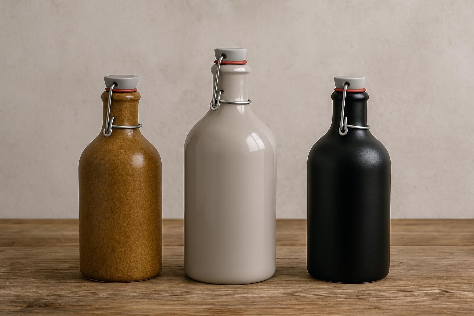 Samostatne dostupný pákový uzáver a gumové tesnenie zabezpečujú vzduchotesné uzavretie džbánu. Ideálne pre nápoje, octy a oleje, uchovávajú čerstvosť a dodávajú fľašiam nostalgický šarm. Jednoduché na otváranie a zatváranie, pákový uzáver ponúka spoľahlivé a trvácne riešenie.